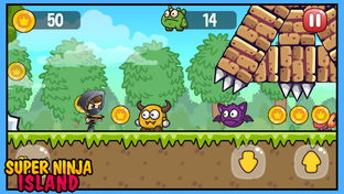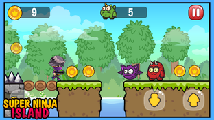 Super Ninja Island Adventure - Play with the Ninjas and Save the Island from the bad monsters, destroy them with the ninja guns and collect all coins , use the gadgets and have the best score.