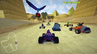 Embark on an epic quest to uncover the secrets of an underwater world or take a thrilling ride through the lush jungles of Val Verde and explore the renowned Cocoa Temple. Get into the driver's seat of your kart and zip through tunnels underground or soar higher in outer space. Alternatively, hit the countryside roads or explore the alien terrains, bask in the sunshine on the sandy beaches, and enjoy the race as other karts whiz by. Just make sure to avoid those pesky banana peels! Stay alert for obstacles, including bowling balls, plungers, bubble gum, and cakes flung by your opponents.