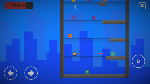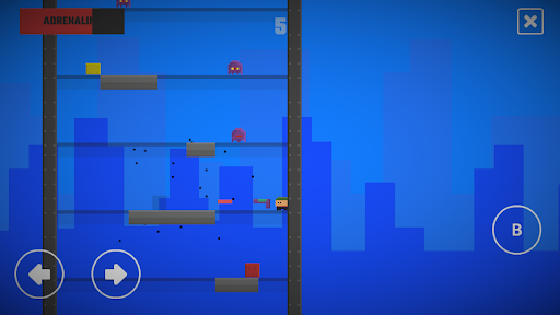 Survive Plus is survival platformer shooting game, where you need to keep your adrenaline as high as possible, by shooting enemies, and keep going up to gain higher score.