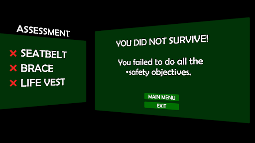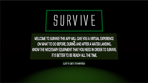 SURVIVE VR is created to lessen the casualties due to tragedies that involve an aircraft. It takes the user to a virtual world where he can learn and simulate the correct emergency procedures during a particular emergency situation.