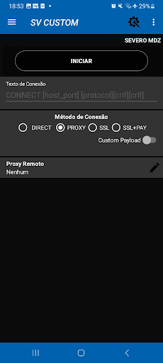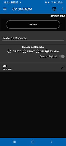 Os seguintes método de conexão são suportados atualmente: SSH DIRECT, SSH + PROXY e SSH + SSL.