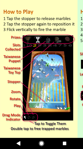 Players can create their own pinball games with different numbers of slots, size configurations, and different texture mappings. Nail barriers and all kinds of spinners can be freely placed on the table face to diversify the traveling routes of marbles.