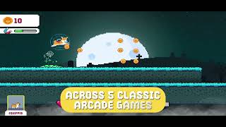 If you like running through grave yards squashing baddies in a side scrolling platformer or jumping up to the moon on a pogo stick Doodle Jump style or expertly maneuvering through obstacles while flying on a jetpack Flappy Birds style or even shooting ice hockey pucks then you need to download this app!