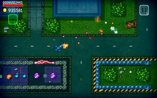 The left stick controls the engine, the right stick controls the tower. The pixel tank on the left side of the screen is the autodisco. Auto aim allows you to conduct an enemy tank, which simplifies aiming. A click on any empty spot on the screen will instantly turn the tank turret in that direction. Do not miss the coins and crystals, they allow you to quickly improve the tunk.