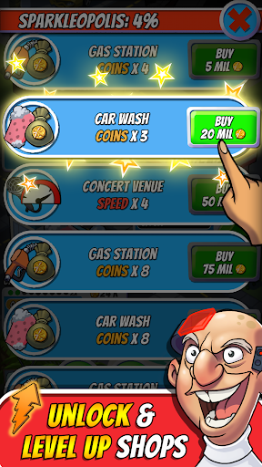 Stare into your Magical TV, peer inside the Box of Infinity, spin your Golden Rims, and dominate your opponents. Upgrade and unlock shops, tap to obtain gold coins, and advance from level to level as your company grows!