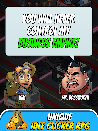 Embark on a thrilling adventure in the world's first idle saga game and overthrow the avaricious corporate magnate, Mr. Bossworth! Discover new worlds, invent beneficial gadgets, and research upgrades to enhance your robot workers and acquire incredible wealth.