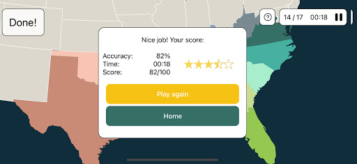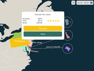 - Visual cues to help memorize country and state locations more easily