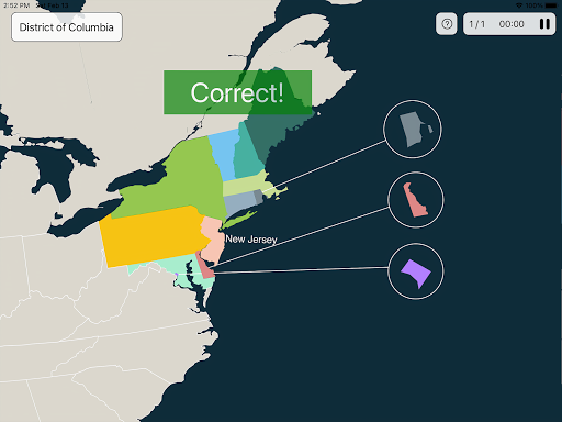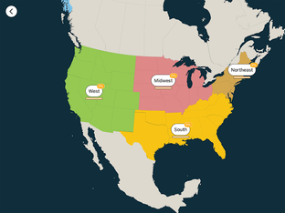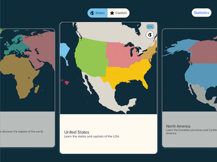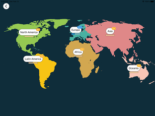 All continents are divided into regions and subregions to allow for simpler and faster learning. No zooming or panning necessary… simply tap on the location of the country when prompted.