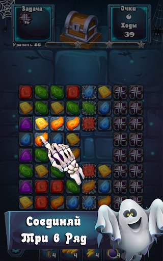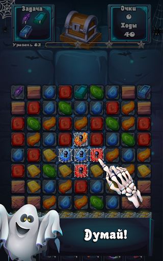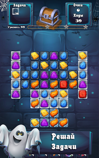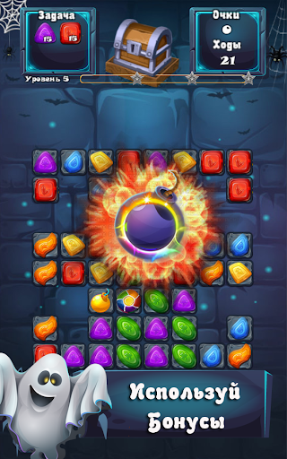 Соединяй в один ряд одинаковые камни от трех и более камней.