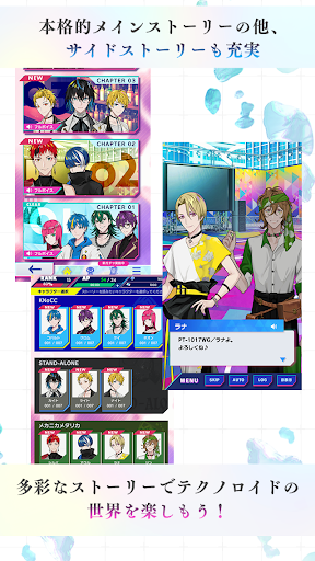 In this melancholic yet beautiful story, experience the world of androids through the media mix project created by Norn9's composer, RUCCA, and Elements Garden. In a world where most of the land is submerged due to abnormal weather, the World Government manages a society where humans and androids with emotional capabilities known as "kokoro program" coexist. Enter the entertainment tower, "Babel", as the top disciple of the globally renowned robotics expert, Shibaura Etsora, and stumble upon four androids that were left unattended and malfunctioning without any knowledge of their purpose or why they are in sleep mode. By awakening them, you set off a chain of events that alters everyone's destiny. Experience the fully fleshed out story of the androids' activities and growth in Babel's 20-chapter main story, along with a plethora of sub-stories that express their emotions. Use "kokoro bits" to perform successfully during live performances with the easy-to-use and exhilarating puzzle game mechanics. As you rank up during live performances, the main story and materials required for developing and unlocking sub-stories will be unlocked as well. Strengthen your androids using memory upgrades to level them up and unlock memory trees. Now, freely choose your unit and perform live with them. Featuring talented voice actors such as Kawasumi Ayumi, Kobayashi Daiki, and Kaji Yuuki, Technoroid Unison Heart is a game that has everything you could ask for in an android-driven adventure. Join this project that includes Shakugan no Shana's composer, Kotaro Nakagawa, and the voice actor behind Naruto Uzumaki, Junko Takeuchi. Get lost in the intricacies of this one-of-a-kind android society.