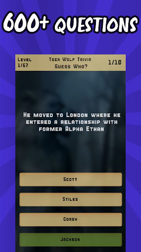This exciting quiz game features hundreds of trivia questions about your favorite characters, episodes, and moments from the show. From Scott's journey as a werewolf to the supernatural events in the town of Beacon Hills, Teen Wolf Trivia Quiz has something for every fan.