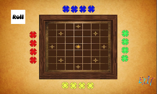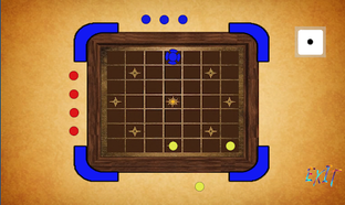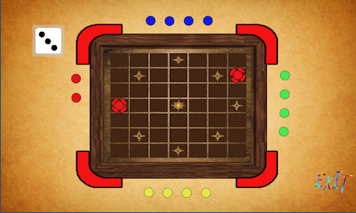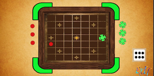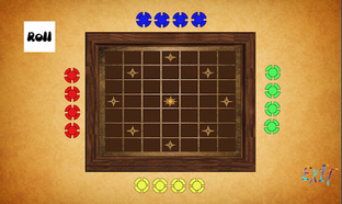 The game board is a 7x7 grid of squares and center square of each side of the grid is occupied by Red, Green, Yellow, Blue players. Respective side square is home for a player. The game can be played by 2 to 4 players. When the game is played by 2 players, they must take positions on opposite sides. Each player has 4 colored pawns, and each pawn must travel through a fixed path and reach to the center square of the grid. The pawns can be moved as per the following rules.