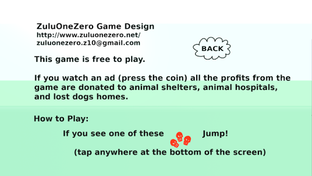 Help your energetic dog navigate obstacles and play catch while supporting animal rescue in this free game with optional ads.