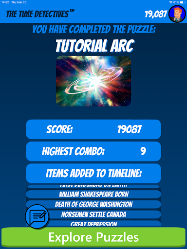 Your mission is to place nine historical events in the order they happened. Earn points, unlock events to your timeline, play and create puzzles from an ever growing Time Detectives' timeline of historical events.