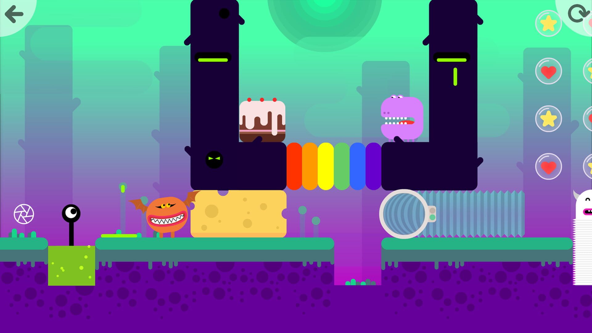 As you journey through the universe, you'll face teleporters, plasma fields, and vanishing rainbow bridges. These obstacles can either aid or obstruct you, so you'll need to use your brainpower to figure out how to maneuver around them.