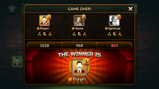 The player who received the buy starts the game - puts the first card on the table. The rest of the players must, in turn, lay down one card of the same suit. If a player does not have a card of the same suit, he has the right to put a card of the trump suit if the trump is declared. If the trump card is not declared or the player has no trump cards, he can discard any card. The player who puts the highest card of the initial suit or the highest trump card on the table takes the table, adding the value of the cards on the table to his round score in the current round.