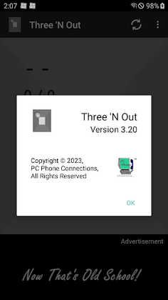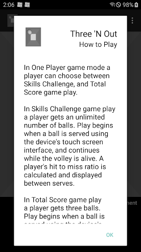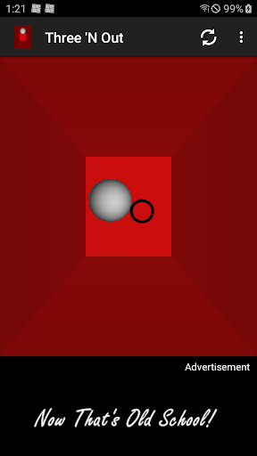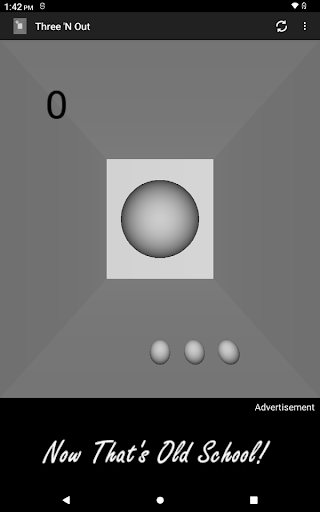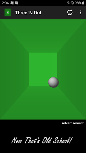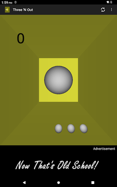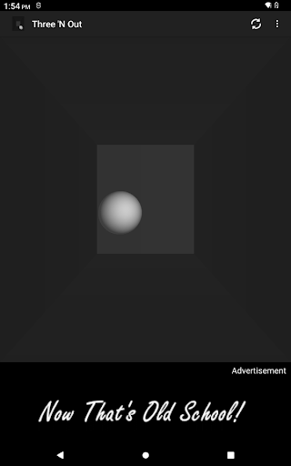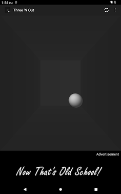 Three 'N Out is a 3D Pong-like game with customizable court colors, audio mute, different game modes, and varying levels of difficulty.