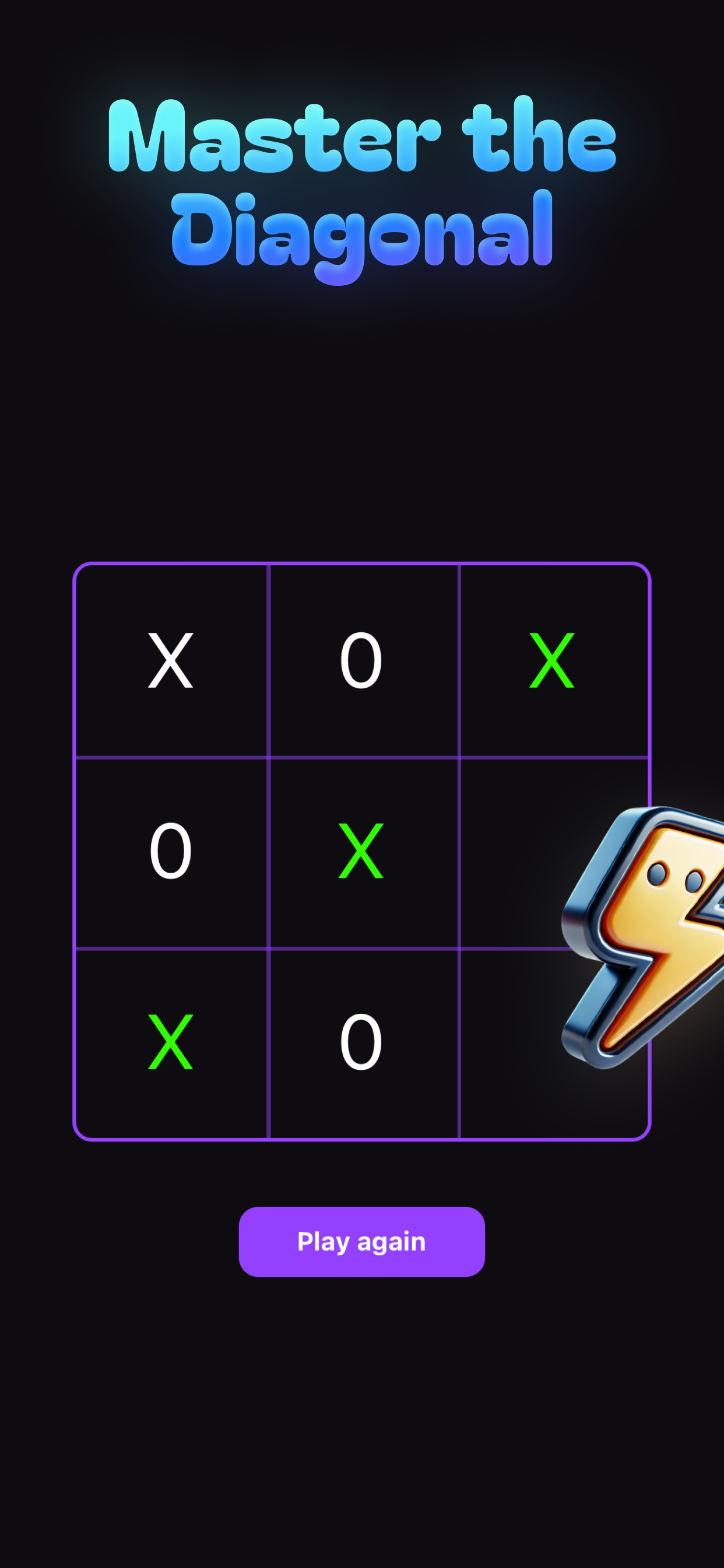 Experience the timeless game of Tic Tac Toe in a sleek and simplistic style. Free from distractions and superfluous elements, this game emphasizes strategic thinking and fast-paced gameplay. Whether you have a moment to spare or seek a mental challenge, this game provides the ideal opportunity to assess your reasoning and decision-making abilities.