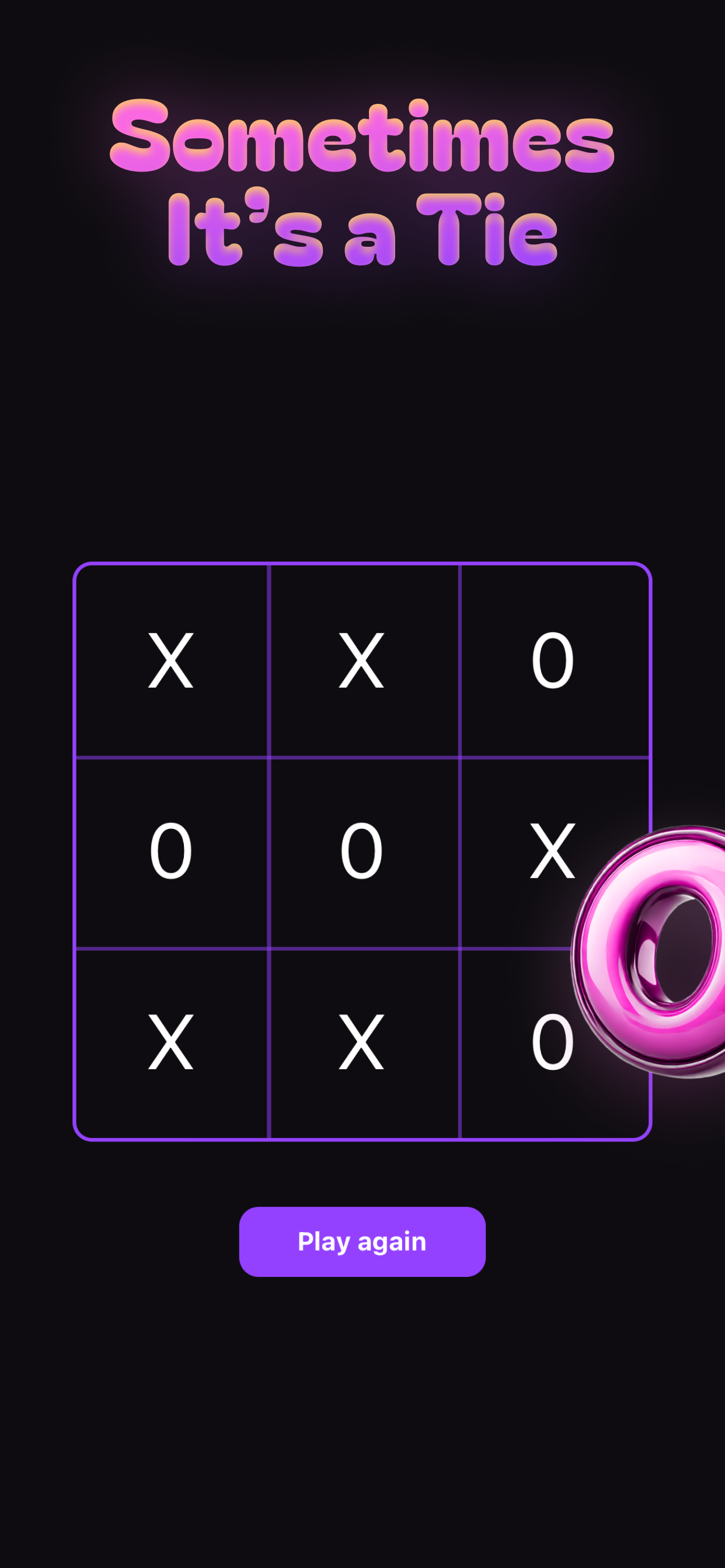 Experience timeless fun with a clean, minimalist design in Pure Tic Tac Toe. Instant restarts, intuitive interface, and quick matches anytime, anywhere.