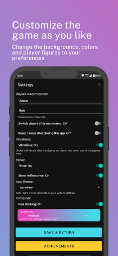Change player names, backgrounds, player colors, and more to customize the experience.