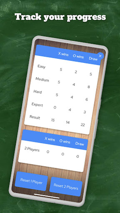 • 1 Player against Android or 2 Player (tic tac toe multiplayer) with same device