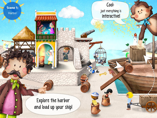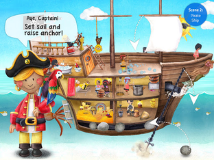 This app lets kids discover the world of pirates, helping them learn the principle of cause and effect while they play and engage with exciting situations.