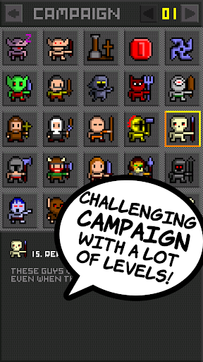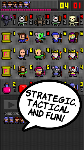 For those of you sold by descriptive lists, take a look at what 'To Arms!!' has to offer: dive into the casual deck builder designed specifically for mobile phones; explore the game's thrilling campaign of 100 levels without the hassle of intrusive ads or in-game purchases; encounter over 100 unique monsters, units, and items at every turn; test your strategy and wits in the game's battle mode with 200 levels; crawl through various gameplay elements that will put your skills to the test; try out the daily mode with a new challenge awaiting you each day; discover the joy of looting treasures; and revel in the diversity of characters including Elves, Vikings, Paladins, Goblins, Nuns, Ninjas, and a lot more!