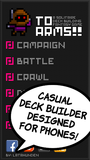 To Arms!! is a free, ad-free, and single-player deck-building game designed for smartphones with over 100 levels, 200 battle mode levels, and various challenge modes.