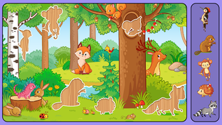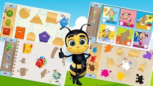 Educational puzzle game with 36 categories including ABC, numbers, animals, fruits, and veggies. Includes mini-games and positive feedback to encourage completion. Available in 7 languages.