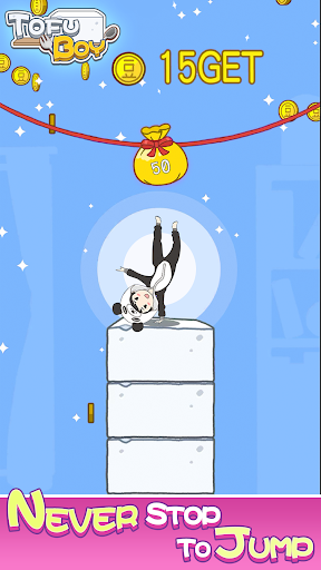 Tap to jump and land the boy in the middle of each piece of tofu for more acrobatic jumps.