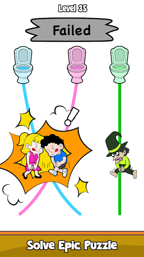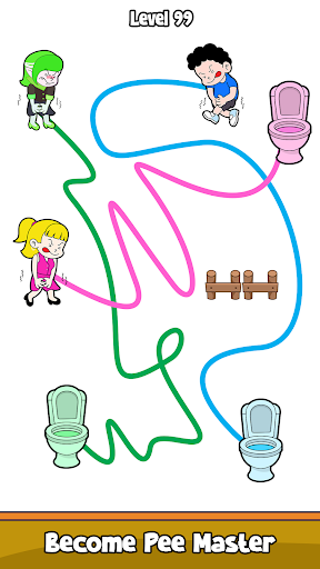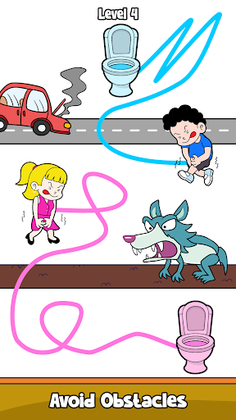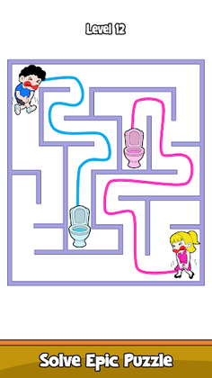 🧻 Playing Toilet Rush Race: Draw Puzzle, your quest is to find the way to reach toilet as quickly as possible. Slide your finger to draw a line connecting the character to the toilet and avoid obstacles along the way. Quickly help the boy and girl rush to the toilet to release the pressure.