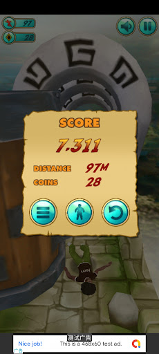 Jump to cross broken bridges, divert your course to bypass ravines, make slides to avoid rock clusters and continue at any cost your run at full speed. Over time, the run's speed will accelerate and your reflexes will be put to the test. Stay focused if you want to travel the longest distance possible. It will be possible to unlock other characters with crystals collected during the runs.