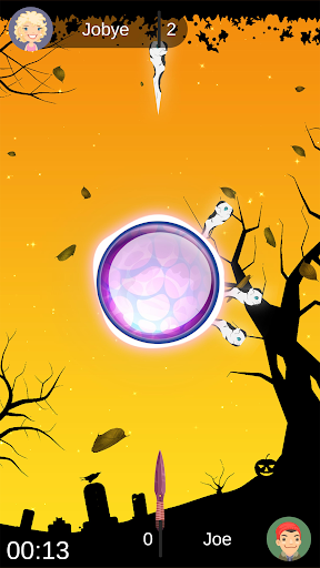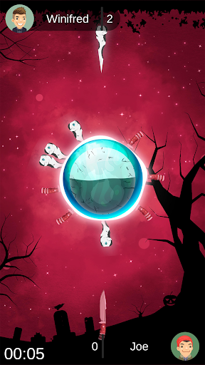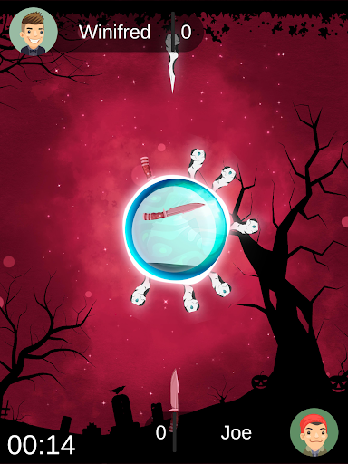 and battle your friends in a knife-throwing contest, take down their knives by hitting them and
