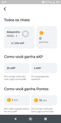 E também, se divirta conectando sua conta em seu jogo favorito, jogando e ganhando eXP para subir de nível e ganhar pontos para trocar por gift cards, diamantes, RPs e experiências incríveis.