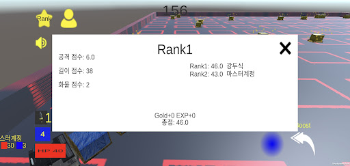 상대가 죽거나 시간이 끝나면 게임 종료되며 얻은 점수에 따라 등수가 정해집니다.