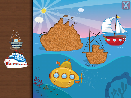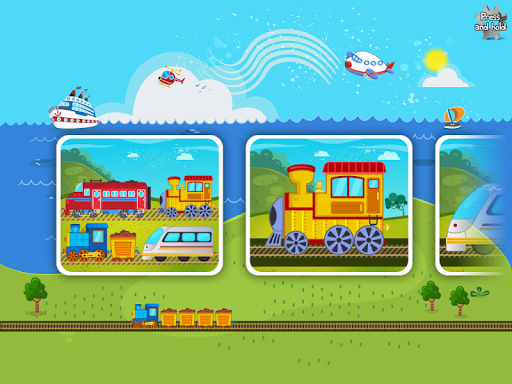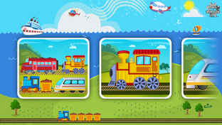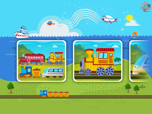 A fun puzzle game for toddlers and kids from ages 1 to 6 featuring 16 cartoon transports such as train, plane, jet, helicopter, ship, boat, submarine, locomotive and more in 20 shape & tangram puzzles!