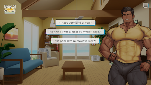 Have a chance encounter at a beach house with a friendly, muscular gay man by the name of Kyle.