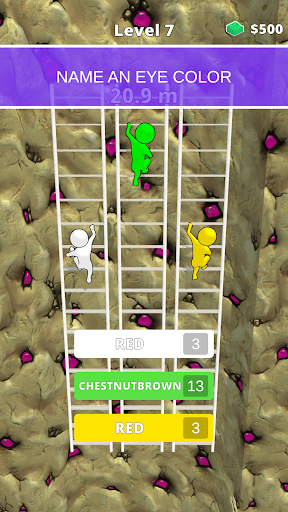 Answer the questions and climb the wall to win the race. Longer answers will raise you more. Reach the top otherwise water will rise and you will be eaten by sharks!
