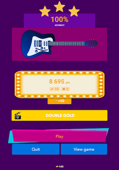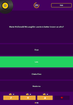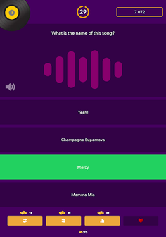 This game adapts to your knowledge and will become increasingly challenging with questions from top artists like Rihanna, Sia, Lady Gaga, Eminem, Ed Sheeran and popular bands like Coldplay, U2, One Direction, Radiohead and much, much more!