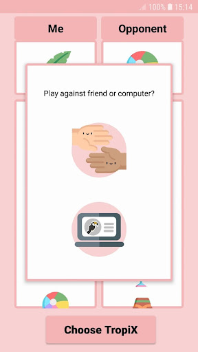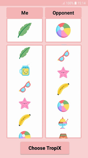 At the beginning of the game, the user receives a list of characters, known as TropiX, from which he can choose a character representing his player and a character representing the opponent's player.