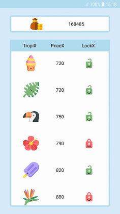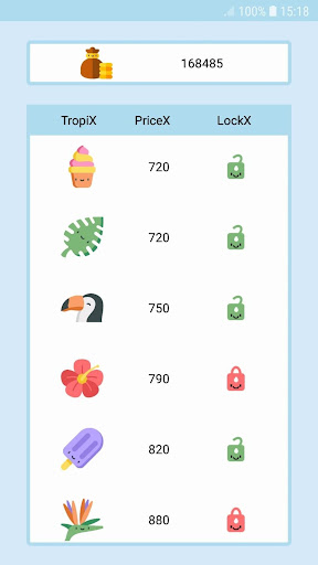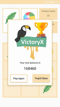 He can enter the TropiX-shop, and through the coins he has accumulated, he can purchase additional characters for the next games. (The score and characters purchased are permanently saved on the device).
