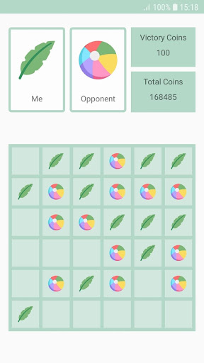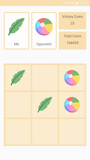 During the game, the user chooses which position on the board to put his character and so does the opponent. The winner is the character that is in sequence in a row / column / diagonal along the board. When the user wins, he wins coins.