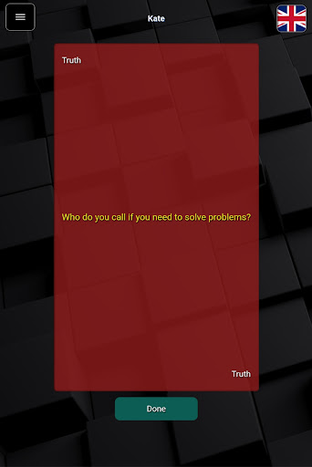 The game "Truth or Dare" is a great way to have fun at any party, get–together or holiday. The game is suitable for a lovers' date, a noisy friendly meeting of friends or a quiet family evening.