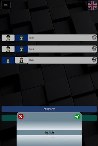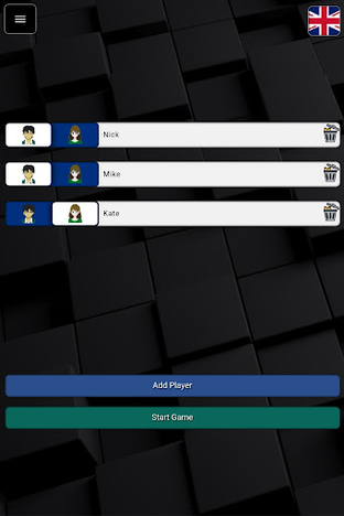 The number of players can range from 2 to 20. Players enter their names and then choose the type of game depending on the participants.