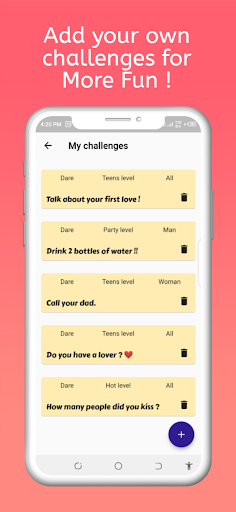 You can also add your own truth or dare challenges. Feel free to use your imagination to add funny truth or dare or naughty truth or dare to make the game as personalized as possible.