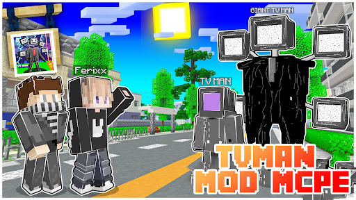 TVman Mod in Minecraft will unleash your potential in battle against camera-headed monsters, where you can immerse yourself in an exciting plot involving Toilets and mysterious Camera Heads. Or join their side and set out to save the world. The cameraman is a creature capable of defeating Skibidi using his unique abilities. The Titan TV Man Mod Minecraft PE is bound to amaze you.