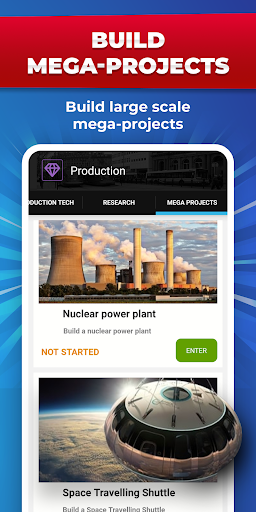 - Appealing tycoon games app layout and striking graphics