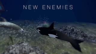 Ten different sea creatures are available for players to choose from, namely Dolphin, Octopus, Marlin, Sea Turtle, Goliath Grouper, Killer Whale, Crab, Narwhal, Manta Ray, and Blue Whale with each having their own experience levels and families. Engage in six thrilling boss battles and test your gaming skills. Beware of a prehistoric beast with sharp teeth as it roams in volcanic waters, and a great white shark that lurks in the nearby oceans.