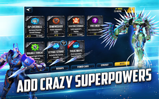 • Load up on power cards and overclocks to bolster your robots! Level up damage and armor, improve characters, and specials, and unleash the maximum power of your steel warriors!