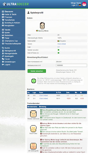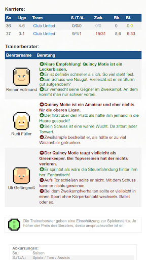 Die Stärken Deiner Spieler sind in ULTRASOCCER nicht sichtbar, sondern müssen durch Beobachtung, Statistiken und Berater eingeschätzt werden - genau wie im echten Leben.